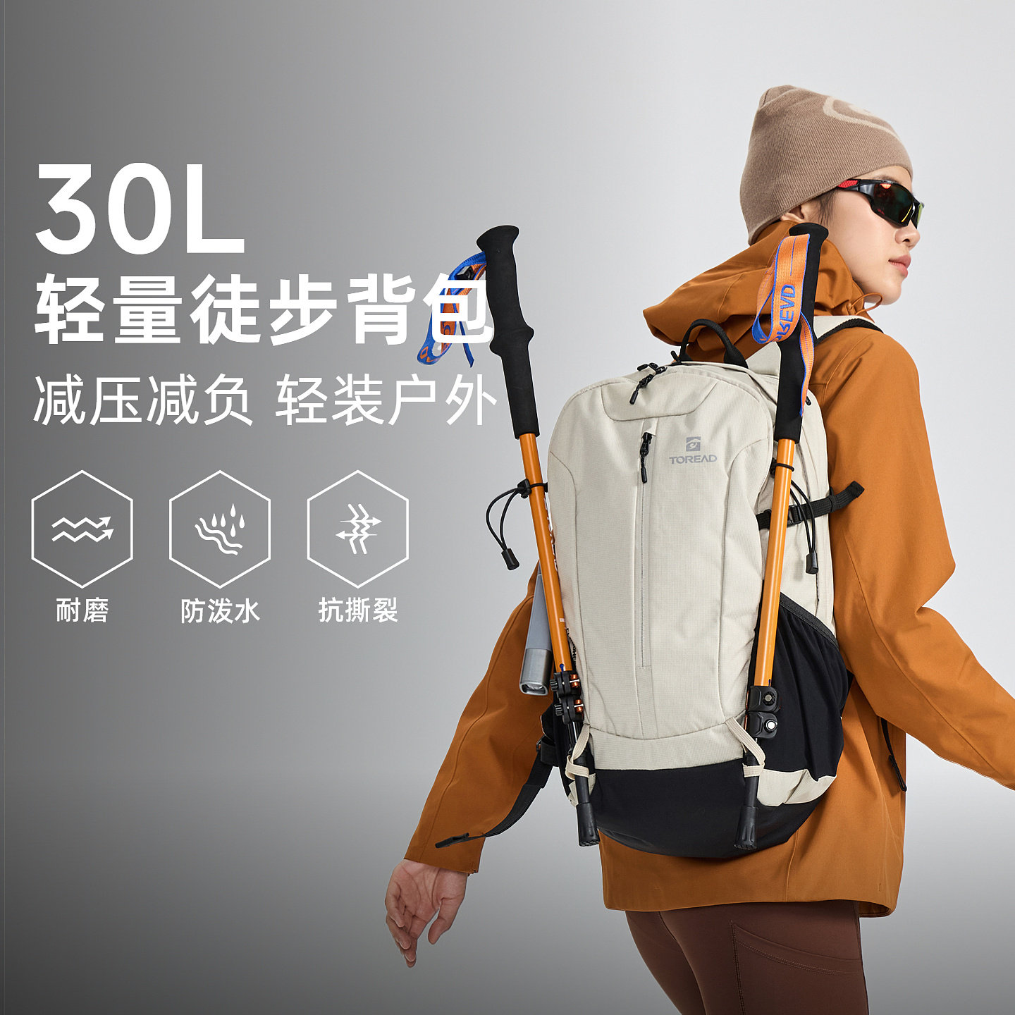 探路者户外徒步双肩背包30升轻量化防泼水露营登山旅行通勤背包