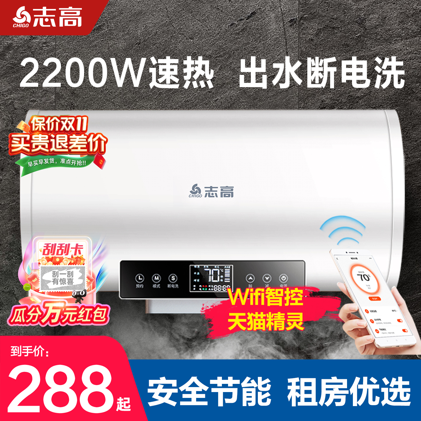 志高电热水器家用卫生间速热洗澡一级能效50升智能储水式小型40升