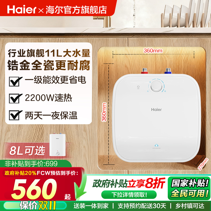 海尔小厨宝热水器电家用厨房卫生间储水式台下11升速热小型FCW