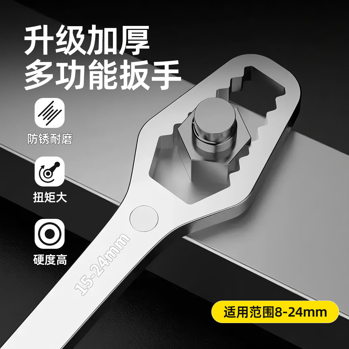 新款加厚活动扳手万用多功能活口板子工具大全正品超厚大开口板手