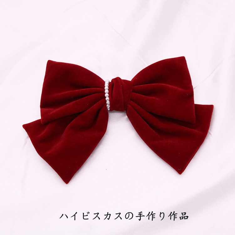 红色缎面珍珠水钻大蝴蝶结发夹女高级感后脑勺顶夹弹簧夹发饰头饰