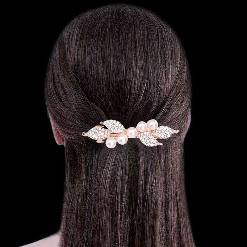 小号珍珠顶夹弹簧夹日韩成人发夹后脑勺简约风气质发卡夹子头饰女
