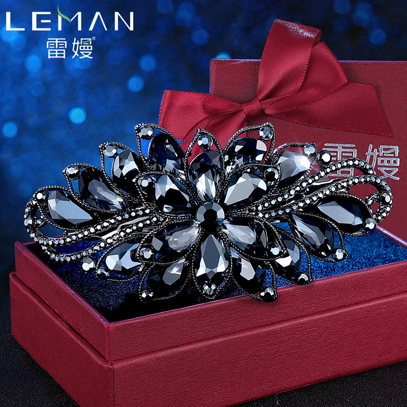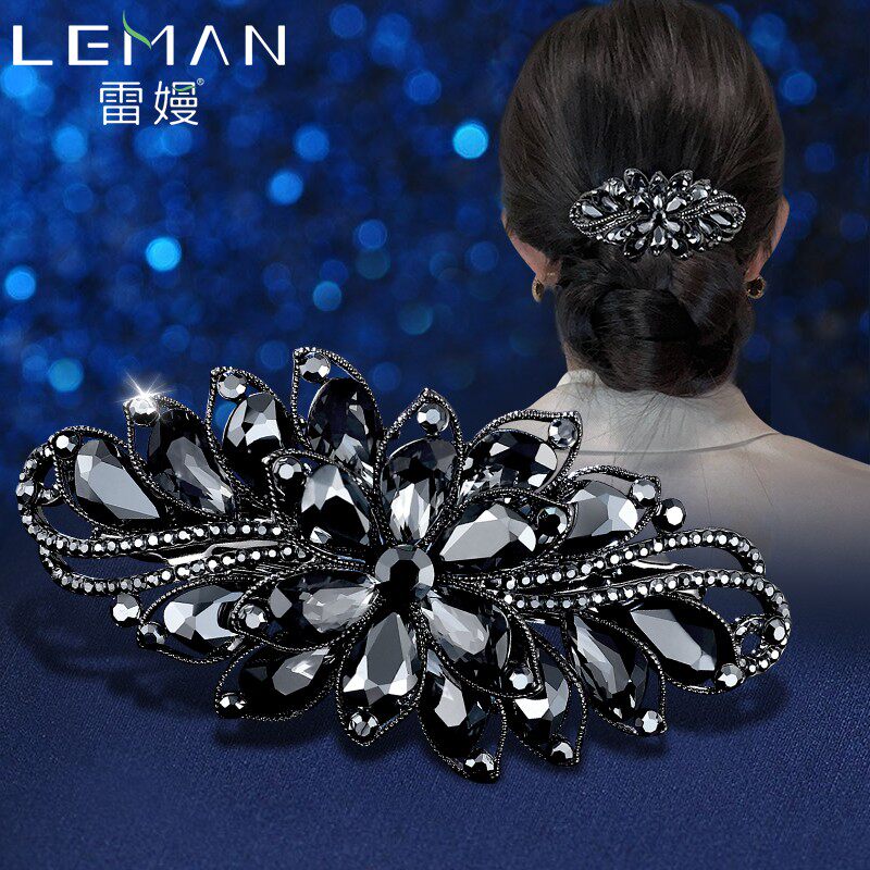 水晶奥钻发夹头饰女后脑勺发卡新款水钻顶夹弹簧夹发饰盘头发夹子