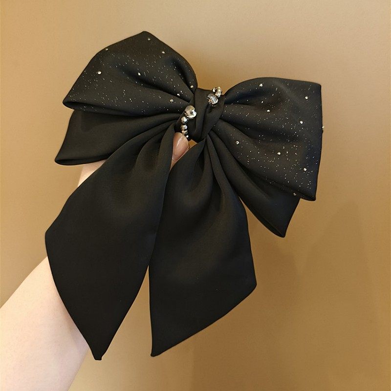 高级感黑色大蝴蝶结发夹女韩国水钻发卡气质马尾夹顶夹弹簧夹发饰