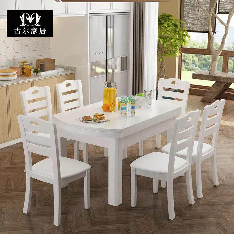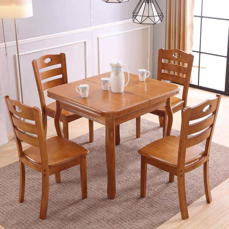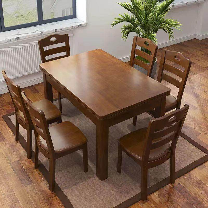 实木餐桌椅组合4人现代可伸缩折叠餐桌家用小户型长方形拉伸饭桌