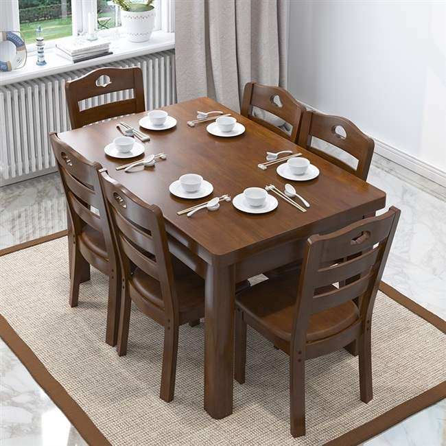 实木餐桌小户型4人6人家用吃饭桌椅组合长方形饭店餐桌出租房饭by
