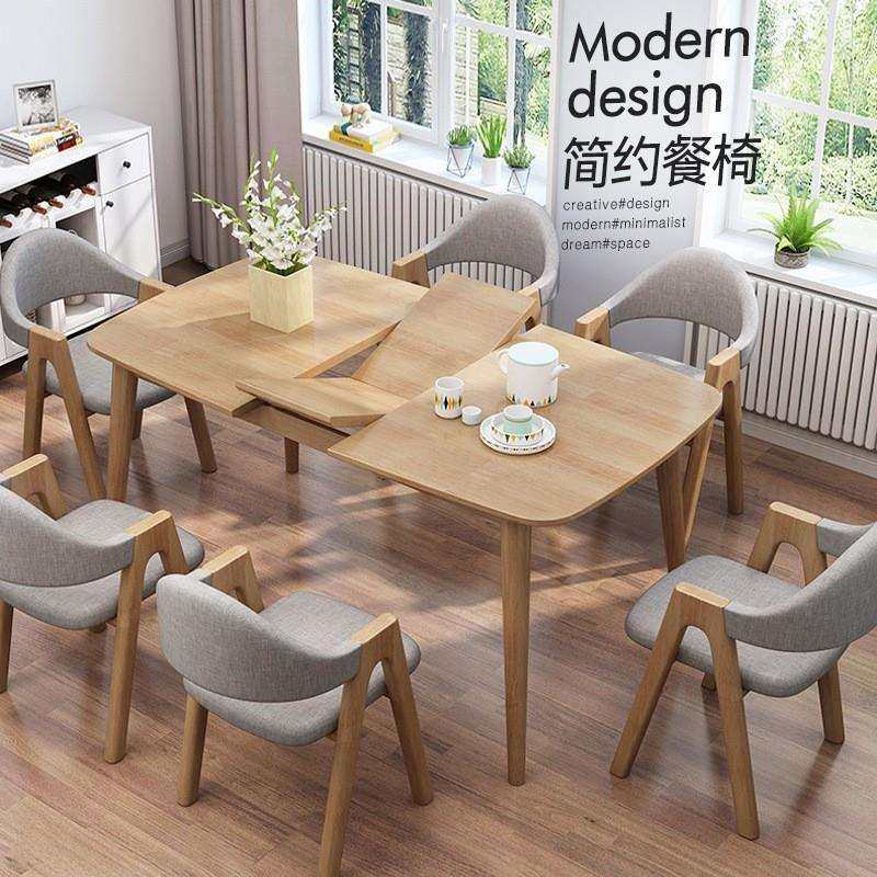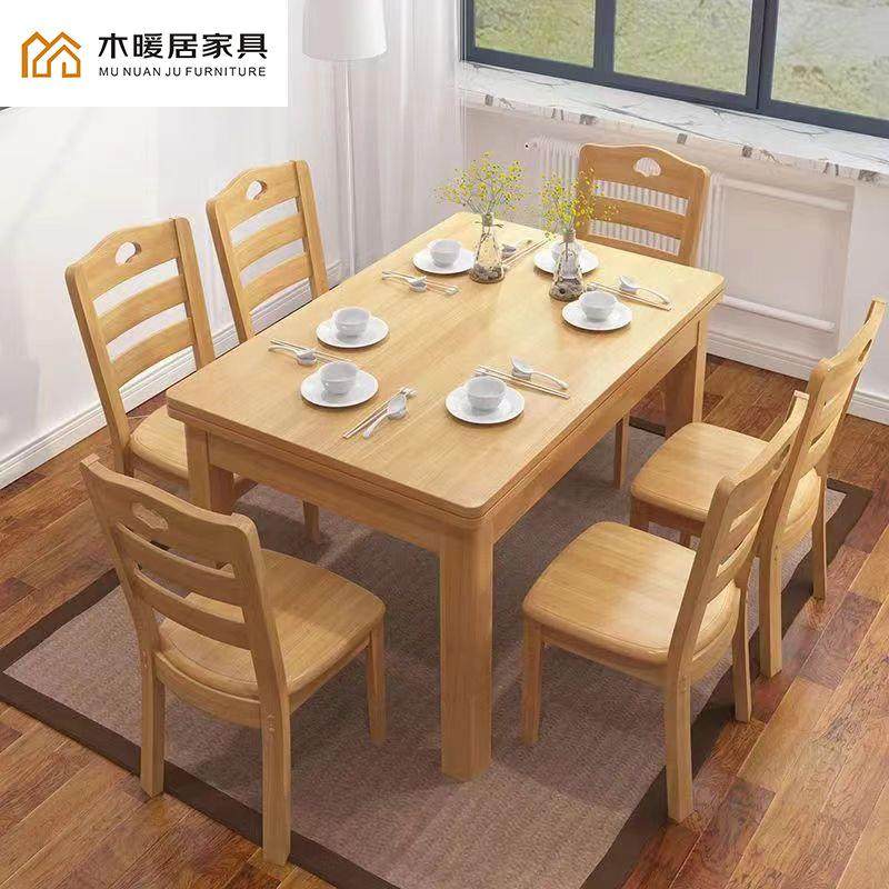 北欧实木餐桌椅组合4人现代简约小户型可拉伸家用长方形6人饭桌