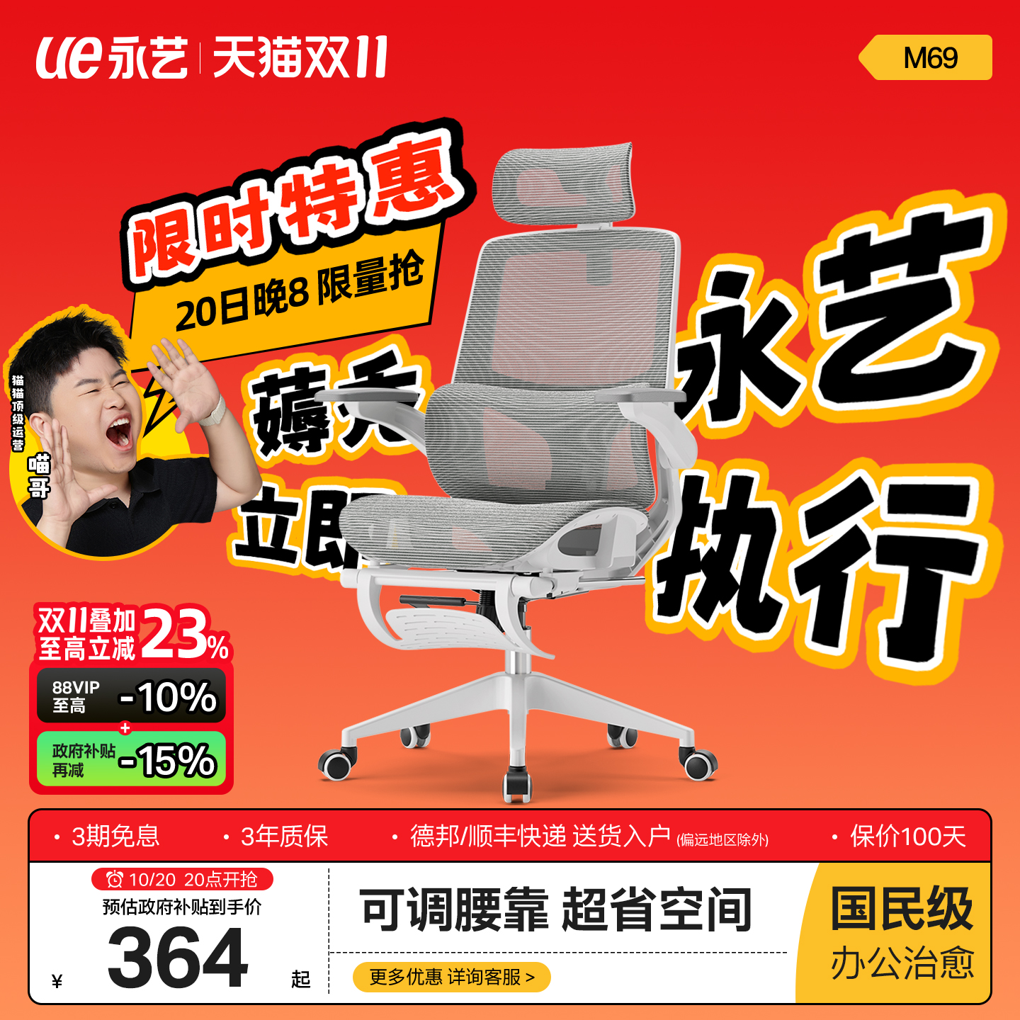 ue永艺M69Pro人体工学椅家用电脑椅办公椅久坐电竞椅撑腰学习椅