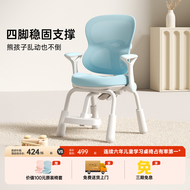 八九间F1儿童学习椅子可升降小学写字电脑座椅初中生家用书桌凳