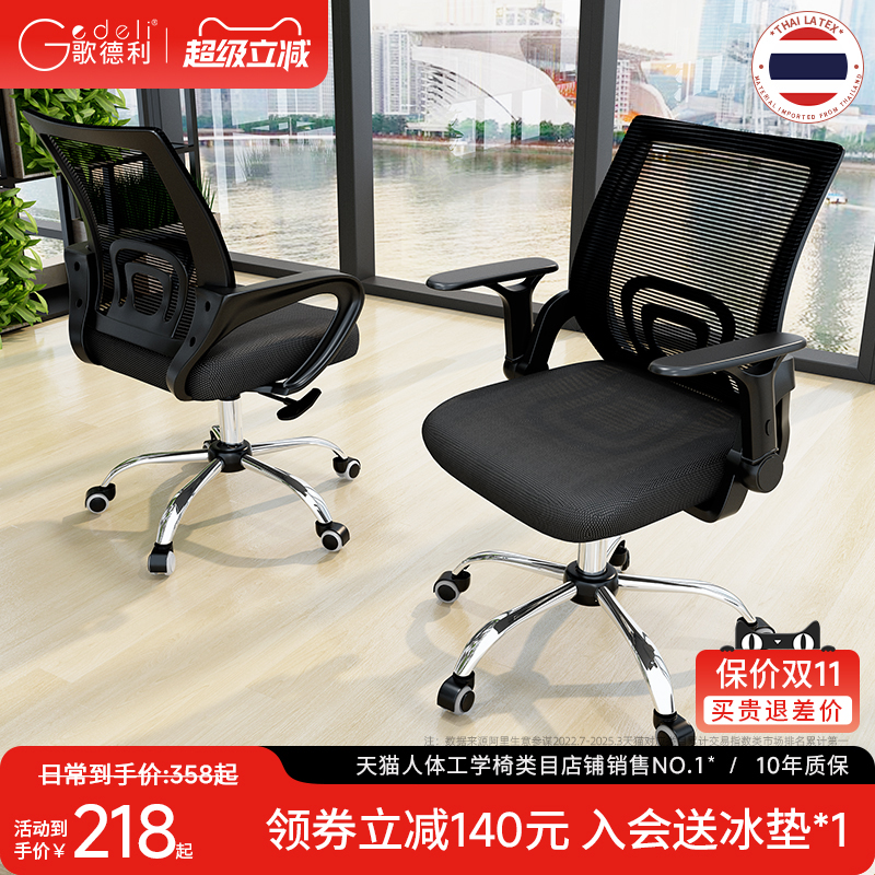 歌德利YH09电脑椅办公椅子靠背乳胶椅学生学习椅家用舒适久坐转椅
