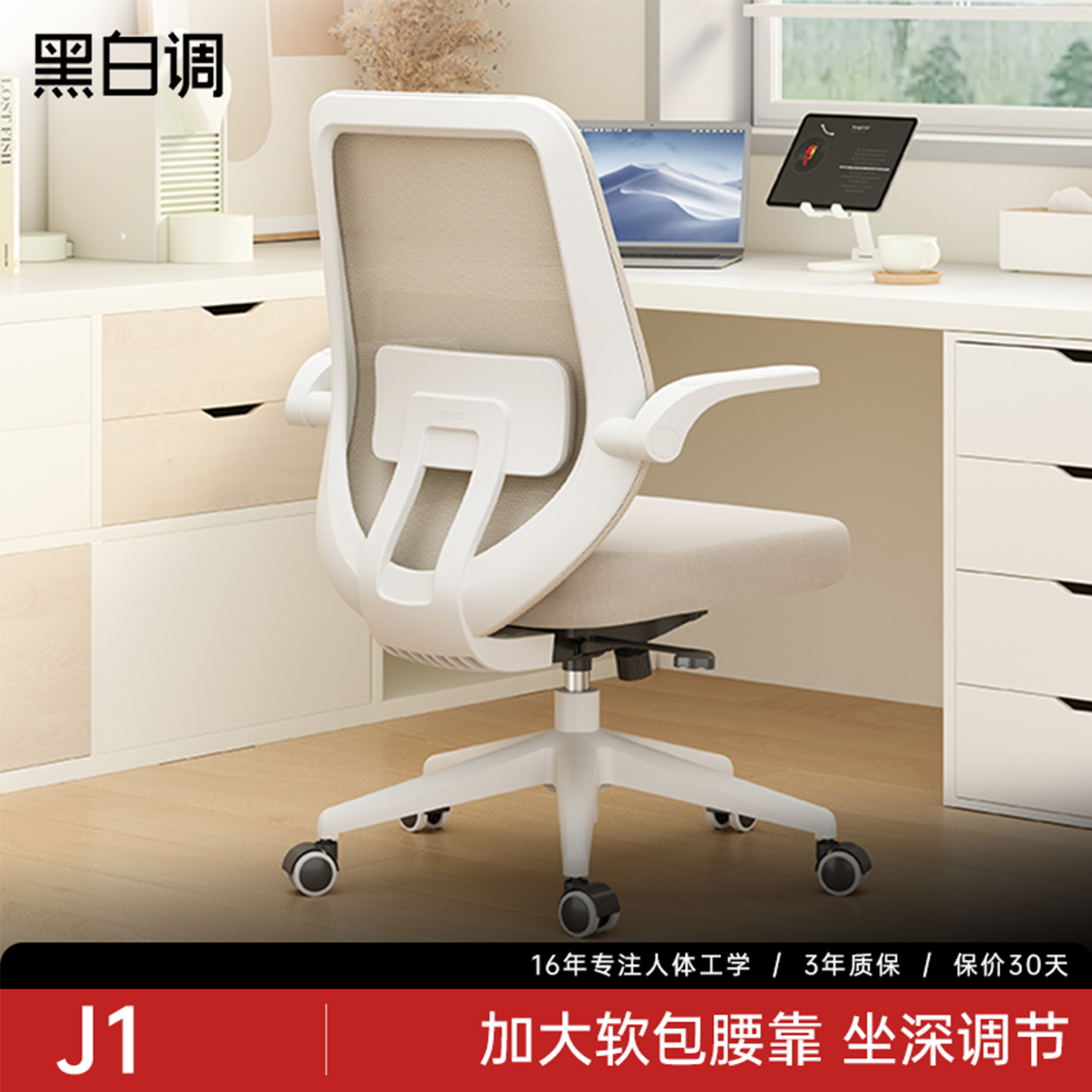 黑白调J101电脑椅办公椅人体工学椅椅子卧室女生学习椅书桌椅家用
