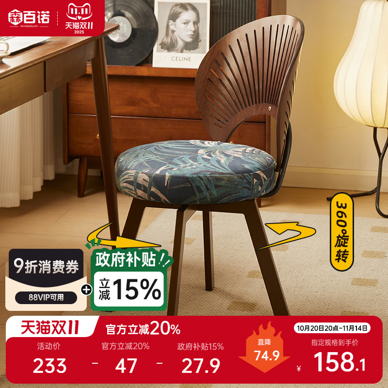 实木旋转书桌椅子舒适久坐电脑椅家用办公化妆椅卧室靠背椅学习椅