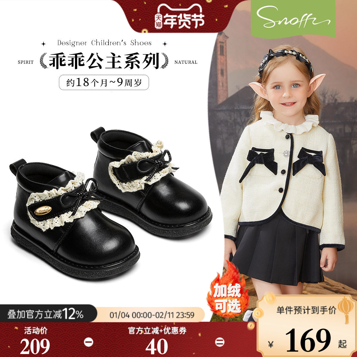 斯纳菲女童皮靴黑色2026秋冬新款儿童女孩软底防滑宝宝小公主皮鞋