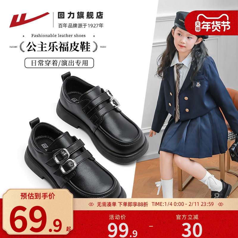 回力女童小皮鞋新款黑色儿童演出鞋子女孩乐福鞋小学生软底公主鞋