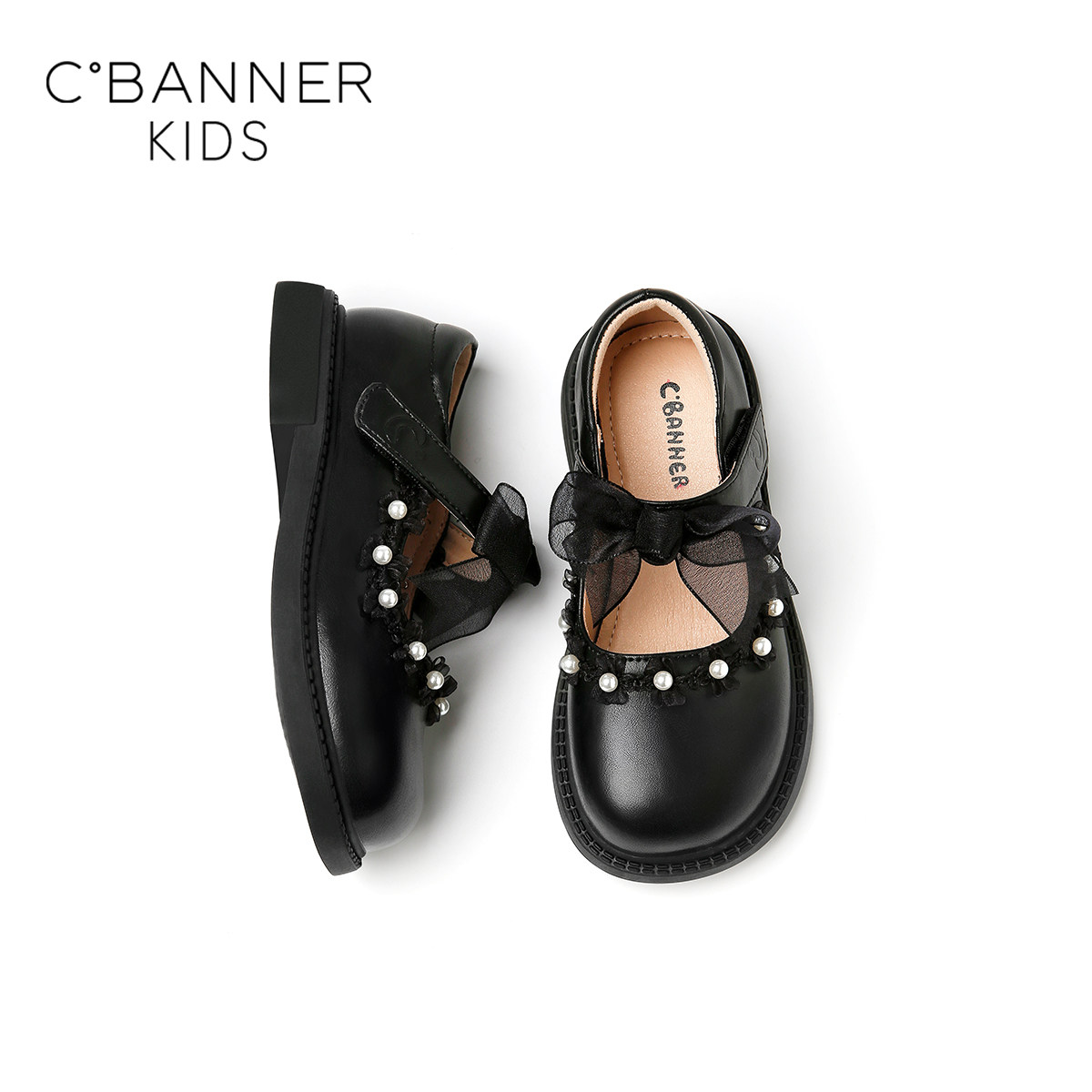 千百度女童黑色小皮鞋2025春秋季新款儿童公主鞋女孩软底单鞋子