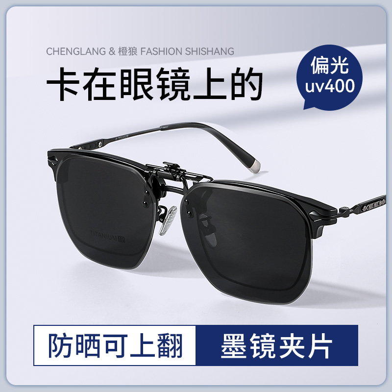 明月京野偏光近视夹片开车驾驶专用可上翻超轻夹片式墨镜男18047