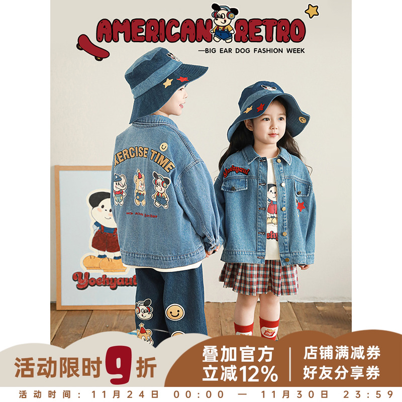 幼悠男童潮酷小狗翻领简洁牛仔外套春季新款宽松舒适儿童痞帅春装