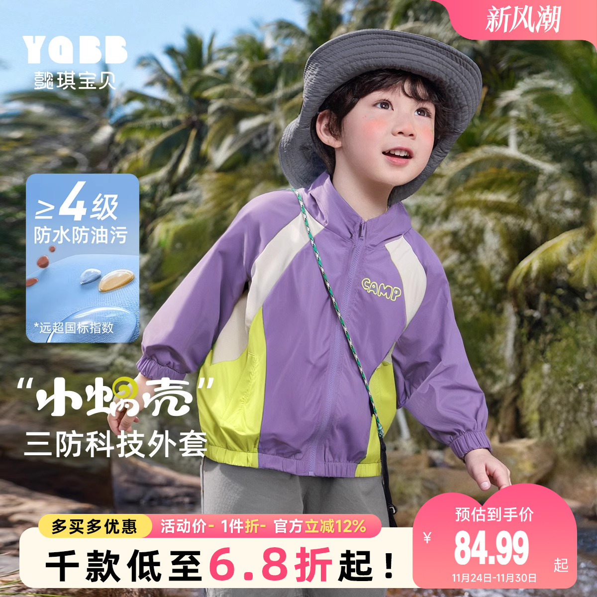 男童冲锋衣外套宝宝春季薄新款连帽夹克上衣男童户外徒步春装风衣