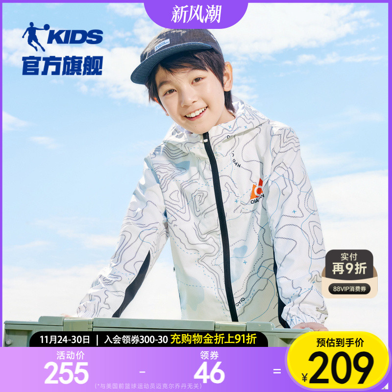 乔丹童装男童外套薄绒儿童外衣2025春季新款中大童防泼水户外风衣