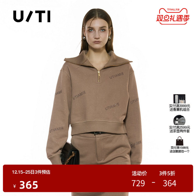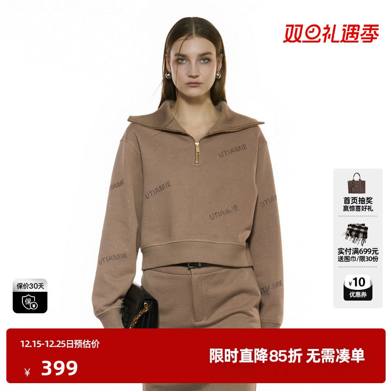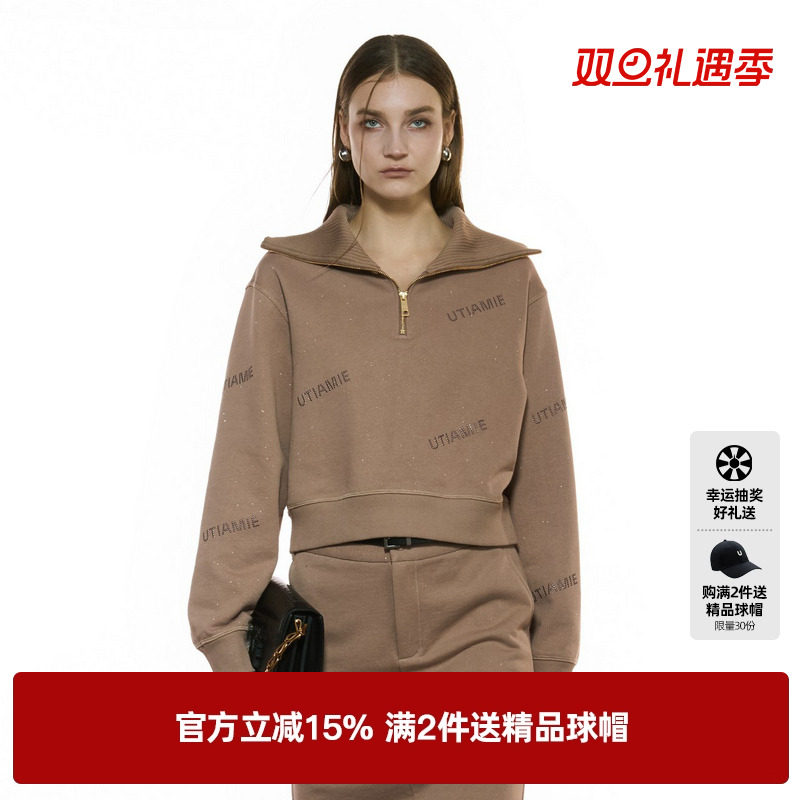 U/TI半拉链闪粉卫衣女正肩短款毛圈运动休闲上衣尤缇2025秋季新款