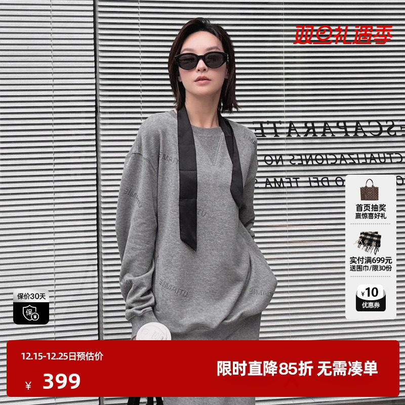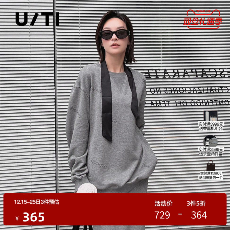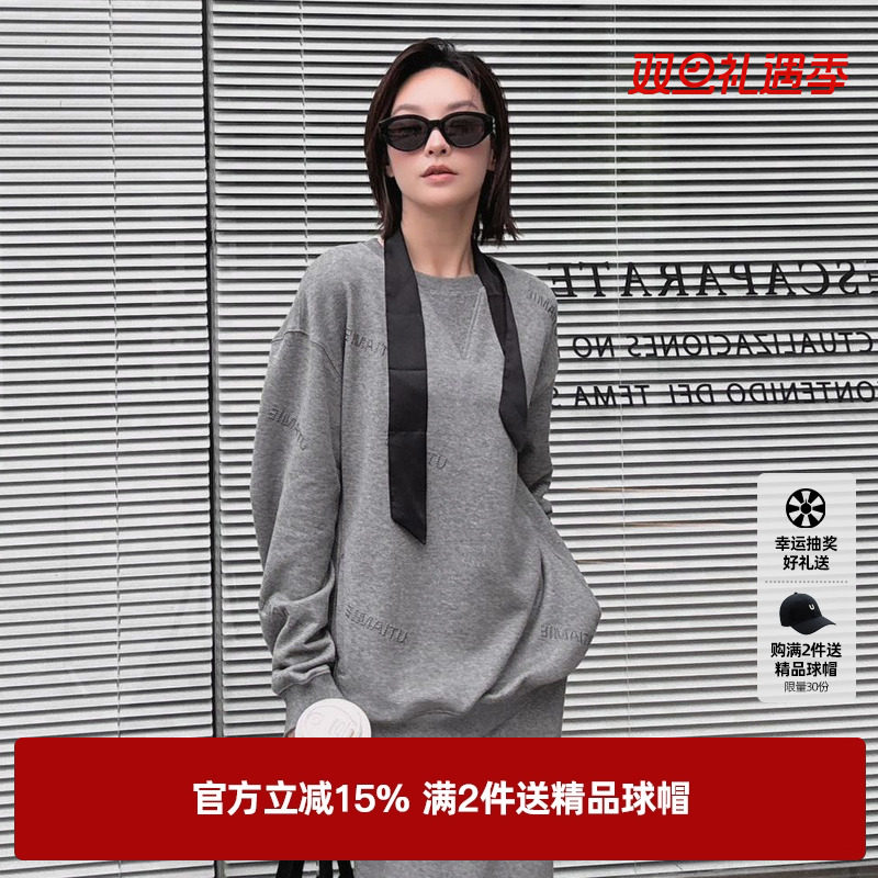 U/TI廓感闪粉卫衣女棉质层次感圆领毛圈休闲上衣尤缇2025秋季新款