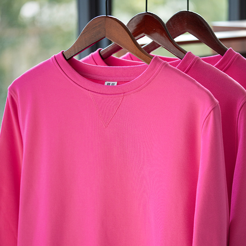 芭比粉卫衣女宽松2025新款圆领套头上衣少女纯色慵懒风ins潮秋冬
