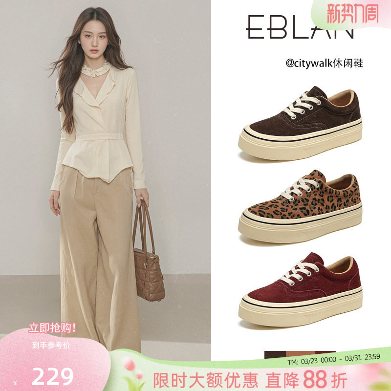 EBLAN/伊伴美拉德厚底板鞋女2026春季新款复古豹纹懒人运动休闲鞋