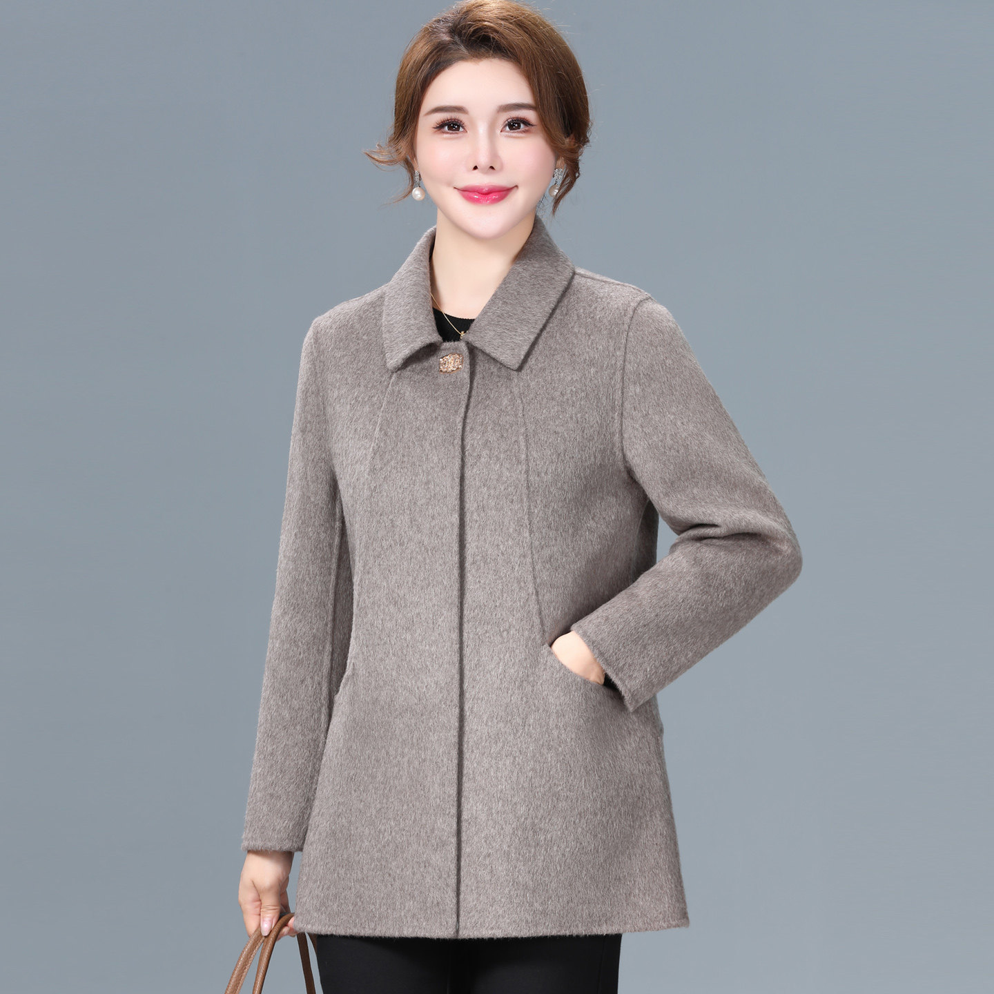 新款双面羊绒短款大衣女洋气妈妈秋冬装大码中老年人羊毛呢子外套