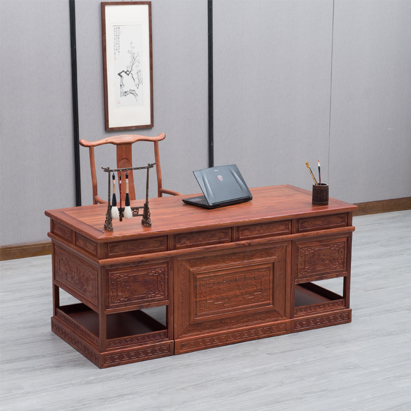 大红酸枝2米雕花办公桌大班台会议桌电脑桌交趾黄檀实木红木家具