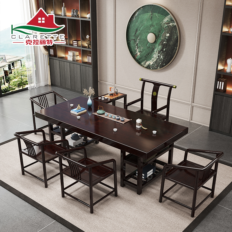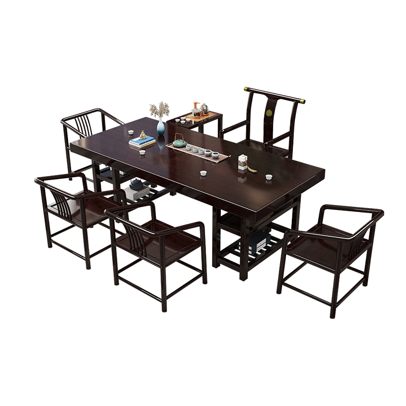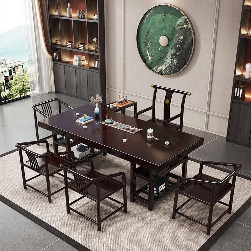 实木办公室家用茶几博古架烧水泡茶格木功夫茶台桌椅2.米大班台