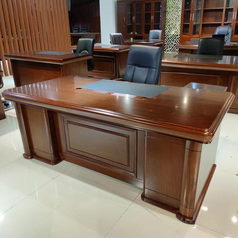 中式老板桌大班台油漆办公桌贴实木皮老板办公桌办公家具2/2.4米