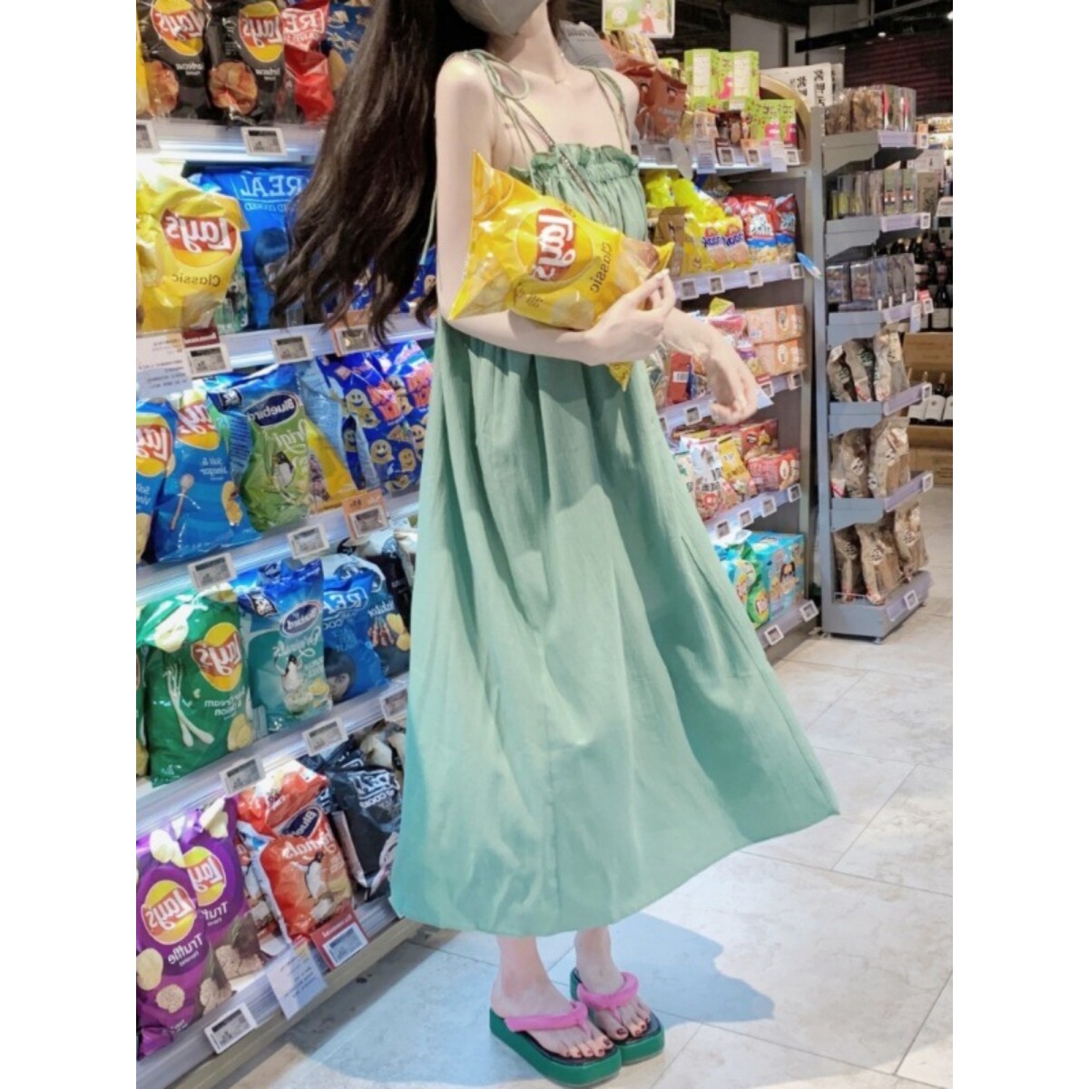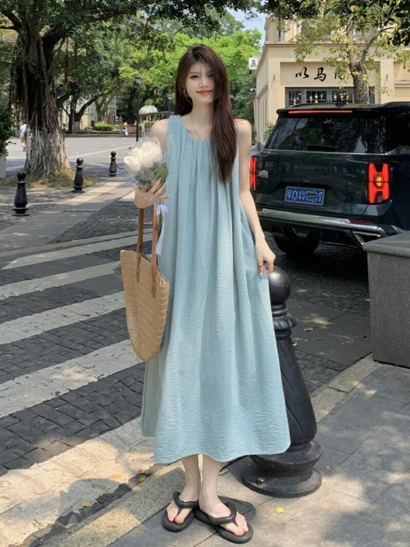 海边度假露背直筒连衣裙女装夏云南旅游穿搭宽松吊带沙滩中长款裙