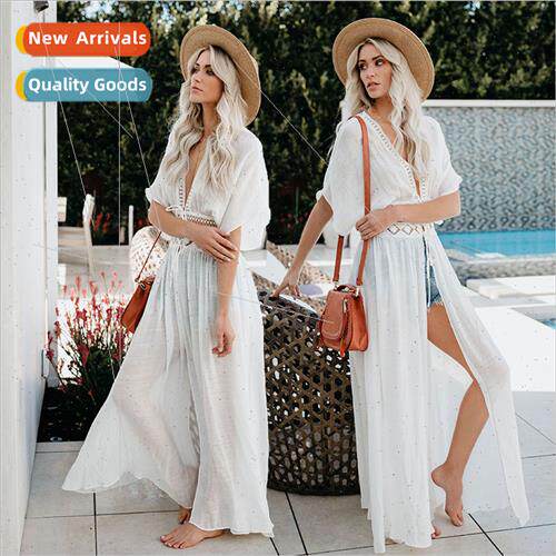 beach long covers欧美度假沙滩连衣裙海边中长款比基尼罩衫开衫