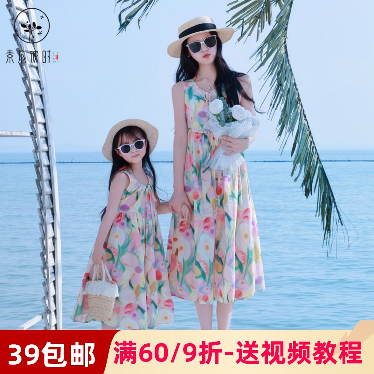 三亚亲子装连衣裙2026春夏季新款母女裝汉服中长款海边度假沙滩裙