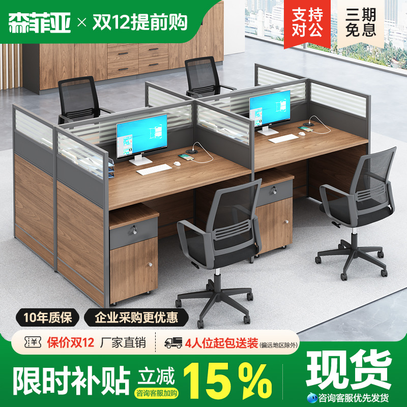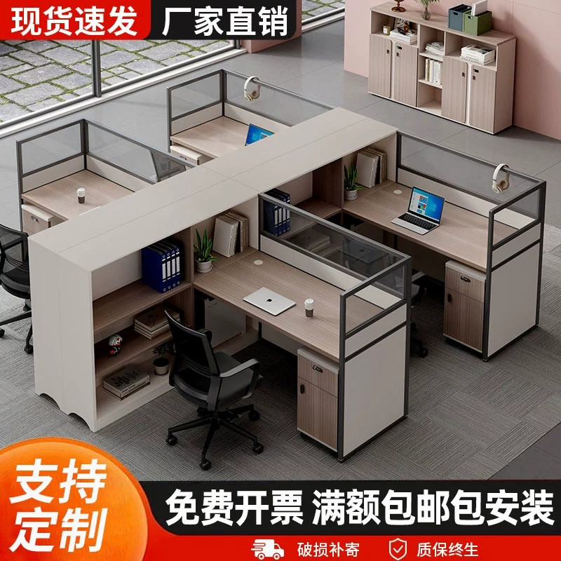 办公桌4人位员工位办公室职员桌椅组合现代简约卡座屏风工位单人