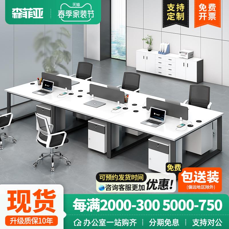 办公桌员工位简约现代屏风隔断办公桌4人位办公家具职员桌6人卡位