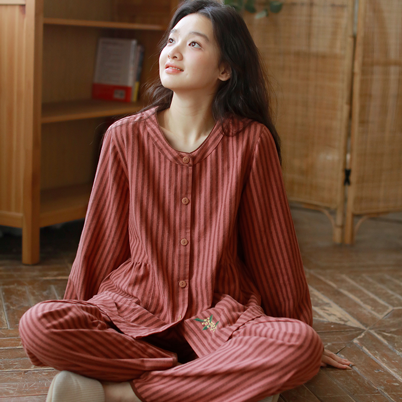 芬腾新款睡衣套装少女长袖春秋款全棉高级感开衫纯棉春秋季家居服