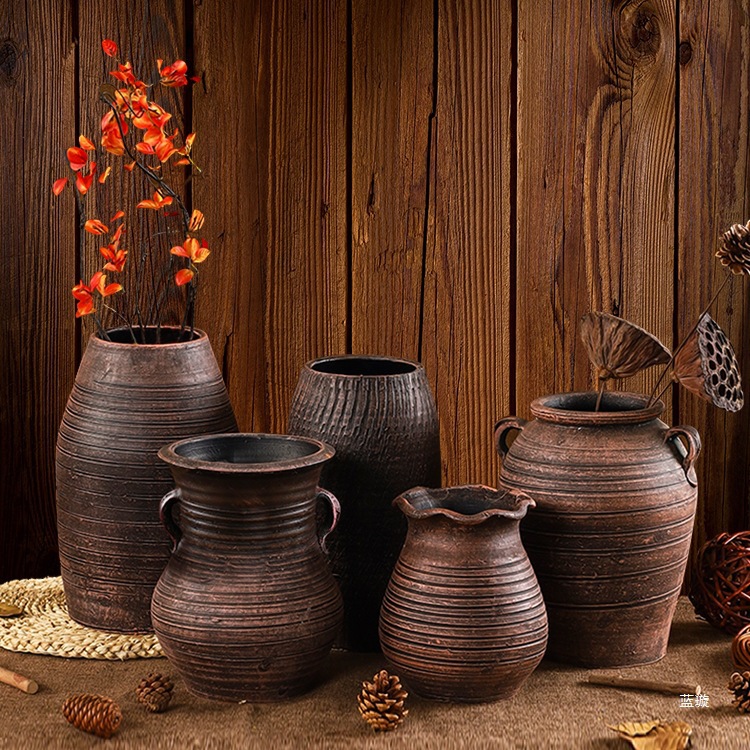 中式复古陶罐花瓶插花器花盆家居土培干花客厅装饰摆件仿古土复古
