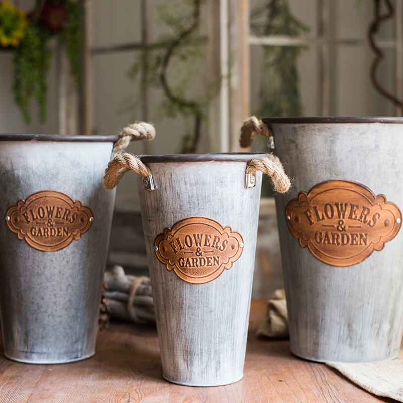 鲜花桶醒花桶复古铁艺花瓶泡花插花干花筒花店家用花器装饰大花盆
