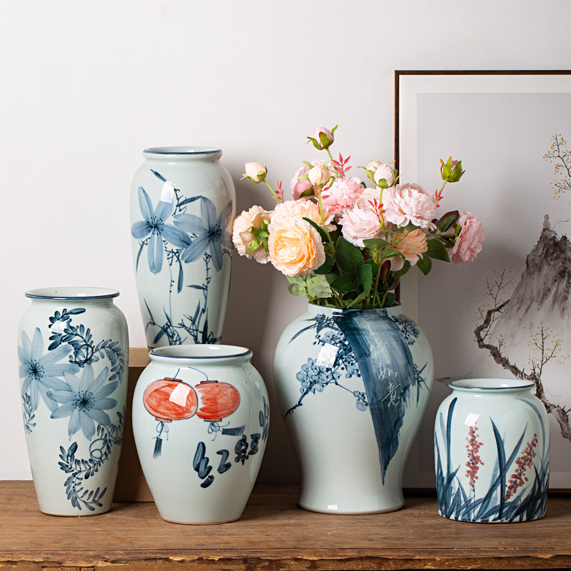 手绘青花瓷景德镇花瓶花器花盆中式水培禅意摆件复古陶瓷仿古插花