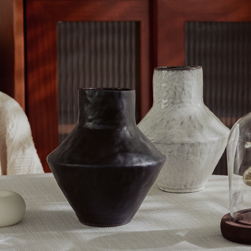 川泽烧侘寂风手工粗陶花瓶新中式复古民宿茶室禅意陶瓷插花器花盆