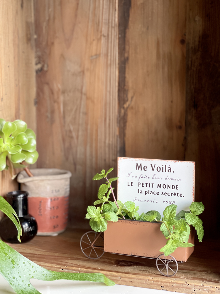 茶包盒桌面高颜值ins复古铁皮花车桌收纳盒园艺花器花盆装饰摆件