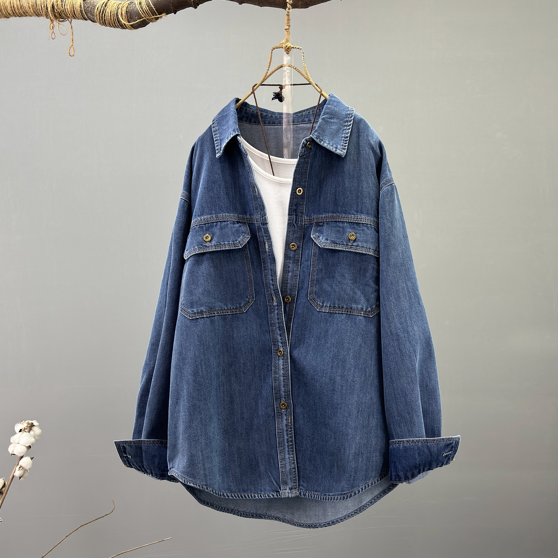 DOROTHY丨复古休闲长袖水洗牛仔衬衫女外套春秋百搭宽松大码衬衣