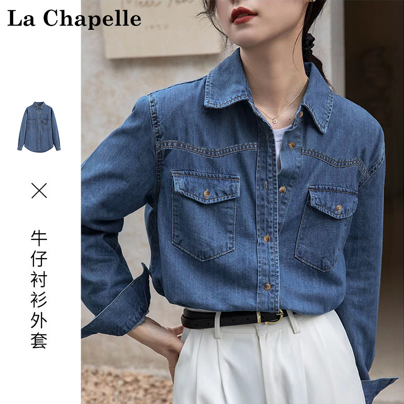 拉夏贝尔薄款天丝牛仔衬衫搭出整个时尚圈 女 衬衣2025新款女外套