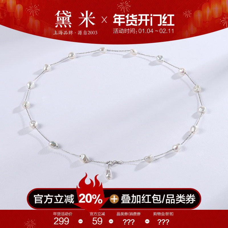 黛米珠宝 轻鸢 5-6mm巴洛克淡水满天星珍珠项链 S925银锁骨颈链女