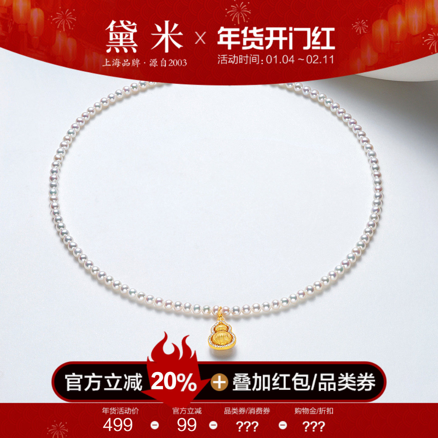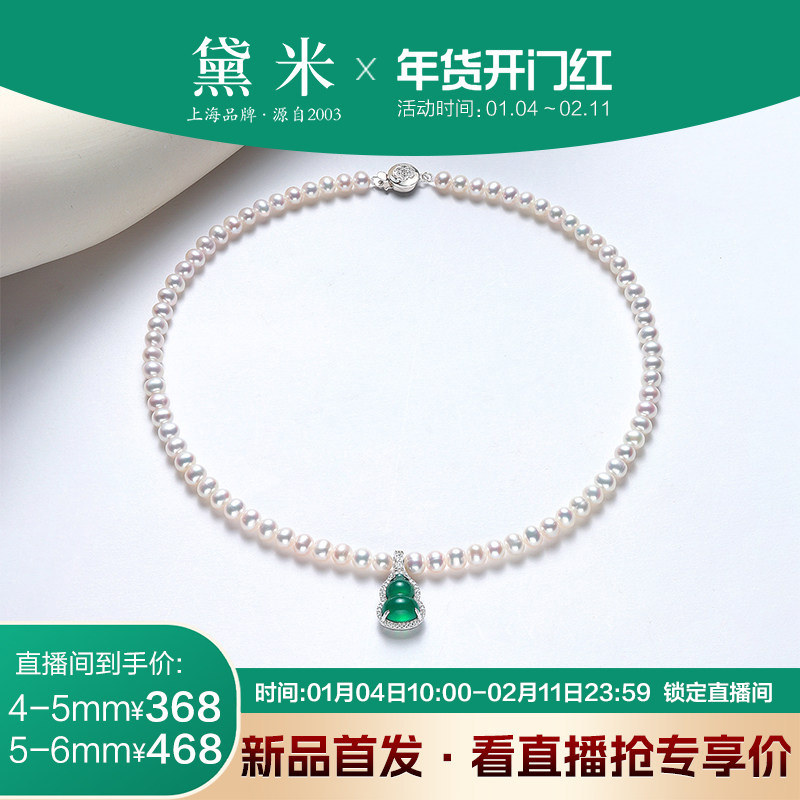 黛米珠宝 福美 4-5mm圆形淡水珍珠项链 S925银葫芦款项链小米颈链