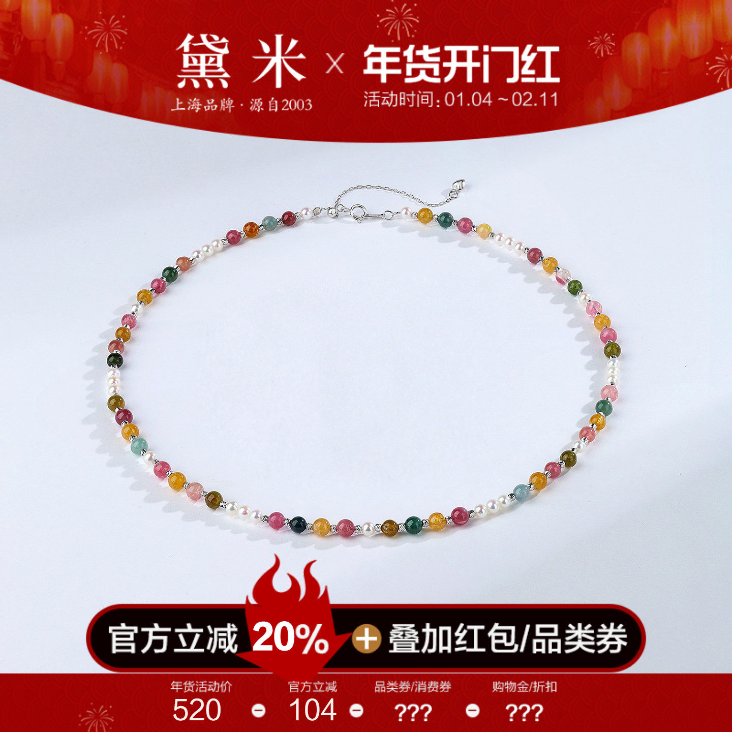 黛米珠宝 奇幻秘境 3-4mm圆形小米珍珠项链 S925银碧玺锁骨颈链女
