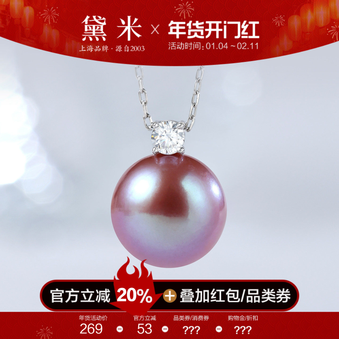 黛米珠宝 醉斜阳 9-12mm圆形淡水珍珠项链 S925银紫色单颗大吊坠