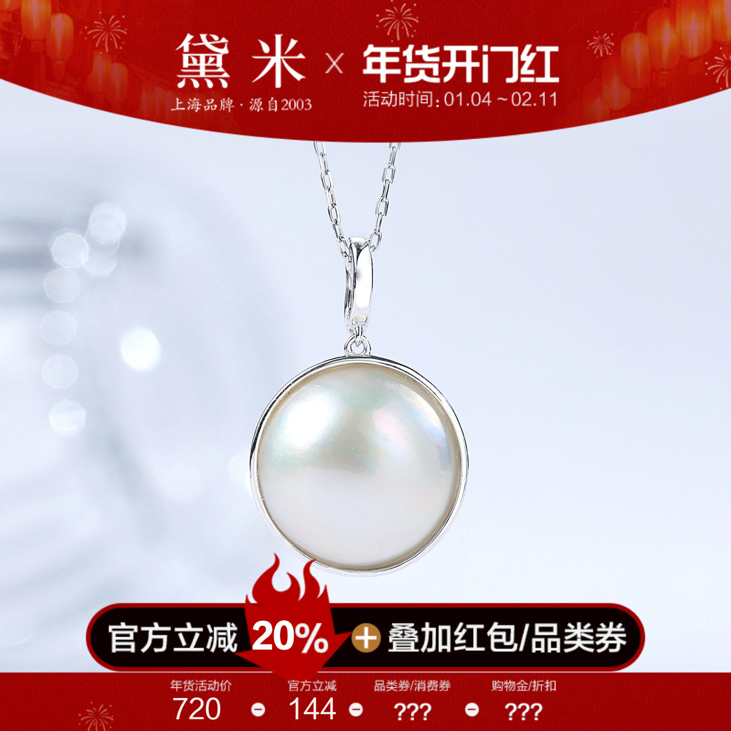 黛米珠宝 霜花 15-16mm贝附海水马贝珍珠项链 S925银大珍珠吊坠女