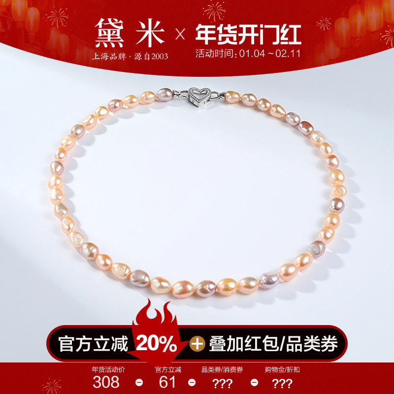 黛米珠宝 醉花舞 7.3-8.3mm莫兰迪色巴洛克淡水珍珠项链 S925银